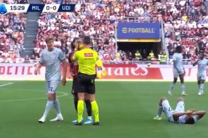 體育資訊04月12日訊 本輪意甲AC米蘭主場0-3慘敗于烏迪內(nèi)斯,上半場比賽發(fā)生了人啼笑皆非的一幕。