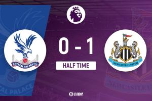 半場結束,水晶宮暫0-1紐卡斯爾聯。