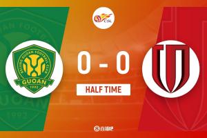 上半場補時5分鐘。半場戰罷,北京國安0-0成都蓉城。