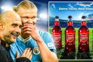 體育資訊04月13日訊 本輪英超,曼城3-0完勝切爾西,在追趕阿森納的路上拿下一場(chǎng)大戰(zhàn)。比賽第69分鐘,鏡頭給到了一個(gè)拿著印有阿森納瓶子的老哥,盡情地嘲諷慶祝。