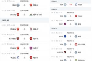 曼城少賽1場距榜首阿森納6分,兩隊還有一場天王山之戰下輪打響。兩隊賽程對比如上圖。