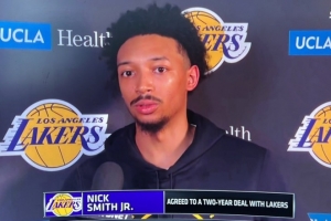 體育資訊4月13日訊 NBA常規賽,湖人vs爵士。賽前小尼克·史密斯接受了采訪。