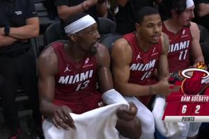 此役,熱火球星阿德巴約狀態神勇,前三節狂轟62分,不僅打破了隊史單場得分紀錄(詹姆斯61分),比肩科比三節62分神跡。