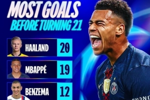 體育資訊4月14日訊 歐冠官方統計了U21球員的歐冠歷史進球情況,哈蘭德力壓姆巴佩居首。