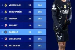 體育資訊4月14日訊 德國轉(zhuǎn)會(huì)市場統(tǒng)計(jì)了上賽季以來五大聯(lián)賽球員出場次數(shù)情況,巴爾韋德以109場居首,維尼修斯104場、瓊阿梅尼102場分列二三位,前三均為皇馬球員。
