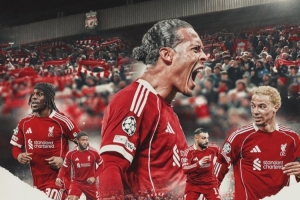 利物浦官方社媒發布了為此役制作的海報,范戴克、?;倏?、薩拉赫、弗林蓬、喬·戈麥斯出鏡。