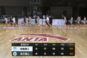 末節決戰,王琦硯命中三分后華南理工再陷入停滯一度3分鐘內又是一分未得,但浙江理工也沒有把握住機會追分,華南理工還是保持雙位數領先。龍鈺菲破荒,鮑一諾和萬穎相繼命中三分,浙江理工追到個位數分差,但無奈時間所剩無幾,最終華南理工52-42戰勝浙江理工。