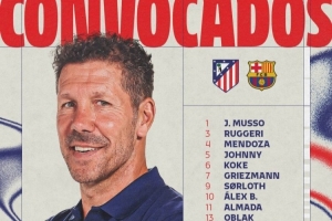 體育資訊4月14日訊 北京時(shí)間明天凌晨,馬競(jìng)將在歐冠1/4決賽次回合比賽中主場(chǎng)對(duì)陣巴薩,首回合馬競(jìng)2-0取勝,馬競(jìng)公布了此役的球員名單。吉梅內(nèi)斯、漢茨科、普比爾、巴里奧斯缺席,卡爾多索、奧布拉克回歸。