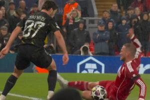 體育資訊04月15日訊 利物浦vs巴黎半場補時,麥卡利斯特鏟倒內維斯,被出示黃牌。