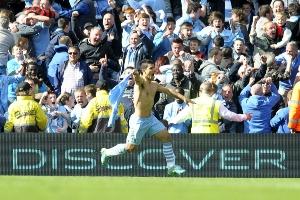 這是英超歷史上最具標志性的畫面之一:阿圭羅在第94分鐘打入制勝球,將冠軍獎杯從死敵曼聯手中奪走后,他脫掉球衣慶祝。