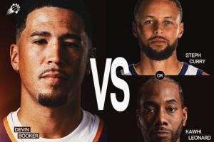 并且,因為太陽排名高,主場能多賣一場票,太陽官方也曬出了宣傳海報,主人公是布克、庫里、倫納德。