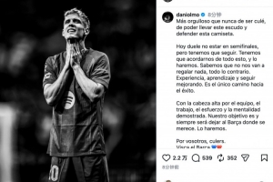 體育資訊4月15日訊 歐冠1/4決賽次回合,巴薩客場2比1擊敗馬競,最終以總比分2-3出局。賽后,奧爾莫社媒發文誓言帶巴薩重回應有位置。