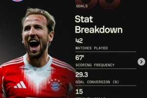 凱恩賽季50球具體數據:每67分鐘一球,射門轉化率29%,6粒遠射