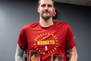 本賽季,約基奇出戰(zhàn)65場比賽,場均27.7分12.9籃板10.7助攻1.4搶斷。他的場均籃板和助攻皆是聯(lián)盟第一,是NBA歷史做到的球員。