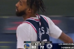 GIF-庫里想造犯規直接被小瓊斯切掉反擊直接上籃