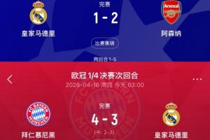 體育資訊04月16日訊 歐冠1/4決賽次回合,皇馬客場3-4遭拜仁逆轉,兩回合4-6遭雙殺,止步8強。