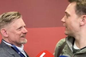體育資訊4月16日訊 歐冠1/4決賽次回合,拜仁vs皇馬,第1分鐘,諾伊爾出球直接傳給居萊爾,后者吊射空門得手,不過拜仁最終成功晉級。賽后,舒梅切爾在混合采訪區與諾伊爾開起了玩笑。