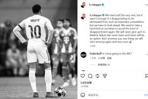 體育資訊04月17日訊 皇馬在歐冠1/4決賽被拜仁淘汰,姆巴佩賽后發表社媒。