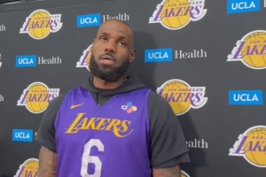 體育資訊4月17日訊 今日,湖人球星詹姆斯在訓練后接受了采訪。