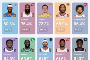 注:要求球員至少出戰40場,上場時間至少20分鐘