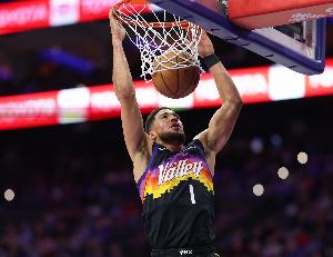 前三節,太陽球星布克表現出色,打了29分鐘25投13中,三分5中4、罰球11中11砍下41分7籃板4助攻1蓋帽。