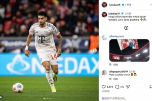 體育資訊3月15日訊 德甲第26輪,拜仁1-1戰(zhàn)平勒沃庫森。賽后,拜仁邊鋒路易斯·迪亞斯在社交媒體發(fā)文,鼓勵球隊。