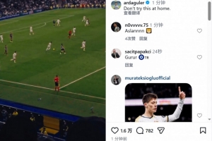 居萊爾社媒曬出吊射破門的視頻,調(diào)侃配文:“不要在家里嘗試這個(gè)。”
