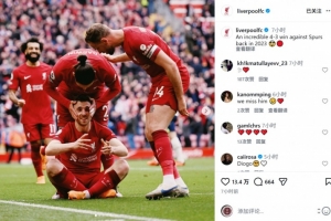 利物浦官方社媒曬出若塔那場(chǎng)比賽慶祝進(jìn)球的照片,緬懷這位去世的前鋒,配文:“2023年那場(chǎng)不可思議的4-3擊敗熱刺的比賽。”
