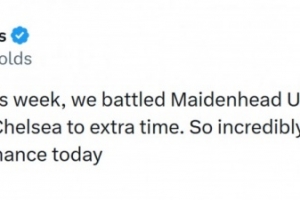 雷克瑟姆老板“死侍”瑞安·雷諾茲社媒發文:“三年前的這一周,我們與麥登赫德(目前第6級別球隊)戰平,而今天我們將切爾西逼進加時賽,我為雷克瑟姆今天的表現感到無比驕傲。”
