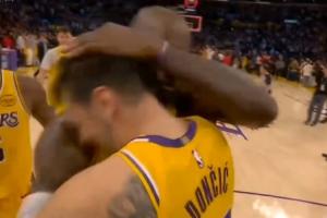 GIF-比賽結束后老詹第一時間擁抱77