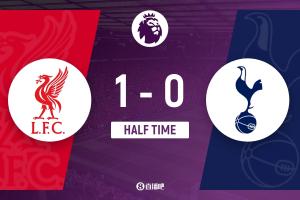 半場(chǎng)結(jié)束,利物浦暫1-0熱刺。