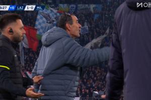 體育資訊03月16日訊 米蘭vs拉齊奧第97分鐘,補(bǔ)時(shí)時(shí)間已過(guò),裁判對(duì)場(chǎng)邊薩里出示紅牌!薩里在抗議補(bǔ)時(shí)時(shí)間!