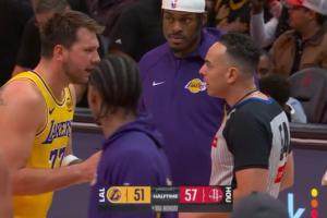 東契奇先是找這個白人裁判阿科斯塔爭吵,范德彪陪著