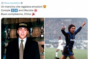 體育資訊3月17日訊 今天是“中國男孩”雷科巴50歲生日,國米官方也曬出球員舊照為其送上生日祝福。