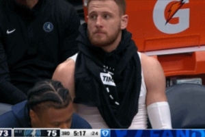 GIF-迪文岑佐坐在替補席沒球衣穿 簡單套個“圍脖”