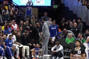 體育資訊3月18日訊 76人客場挑戰掘金,據記者Tony Jones報道,恩比德下半場出現在場邊,被丹佛主場球迷狂噓。